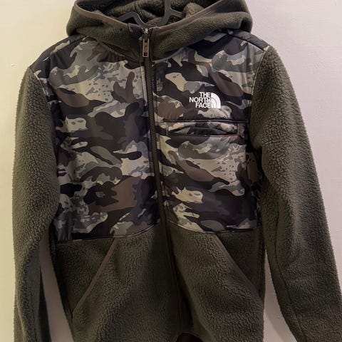 Denne fleecejakke fra The North Face er sort og har en halvlange lynlås foran. Den har lange ærmer og en høj hals, og ser ud til at være velegnet til køligere vejr. Størrelsen er angivet som S.