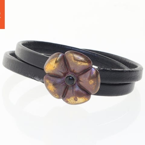 Dette armbånd er lavet af sort læder og har sølvfarvede metaldetaljer. Det har en simpel og elegant design med en metalperle som dekoration. Den måler 60 cm i længden og har en slidstærk lukning for sikker fastgørelse. Tilpas til både afslappede og formelle begivenheder.