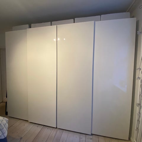 IKEA garderobeskab med HASVIK skydedøre sælges. Skabet er 2 meter bredt (2 x 100 cm moduler).