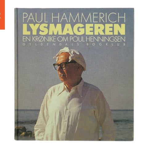 Bogen 'Lysmagaren' af Paul Hammerich er en krønike om Poul Henningsen, udgivet af Gyldendals Bogklub. Den har en forside med en billedillustration og titlen i store, gule bogstaver. Bagsiden viser et havmotiv med en båd i forgrunden. ISBN-nummeret er 87-00-13932-7.