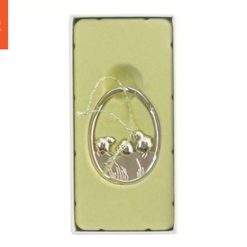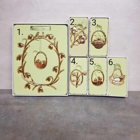 Dekorationen er en del af Karen Blixen’s Påske collection, designet som et ovalt vedhæng med små detaljerede motiver og tre små kugler. Den kommer i en gaveæske med teksten 'Karen Blixen’s Påske - Danish Easter'.