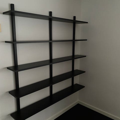 Reolen er hængt op, men taget ned få dage efter, da fejlkøb.