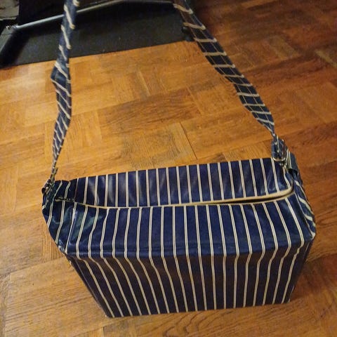 Tasken er sort med en kontrasterende gul lynlås og har en justerbar skulderrem. Den er designet til holde dåsedrikkelse kølig. Tasken måler 65 cm i længden og 12 cm i bredden, hvilket gør den ideel til transport af 5-6 dåser.