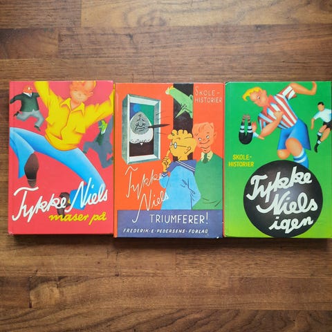 Jeg sælger her de seks bøger i serien om Nikolaj og hans vanvittige oplevelser. Bøgerne er tidligere bibliotekseksemplarer og godt brugte; deraf prisen og bøgerne sælges kun samlet.