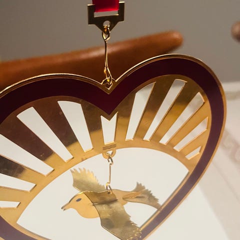 Georg Jensen hjerte juleophæng ca 10 cm. Dekorationsornament med hjerteform og ophængssnor i rød farve. Ingen æske.