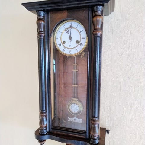 Vægur med pendul i urskabet - Væguret er i palsander eller Mahony træ.