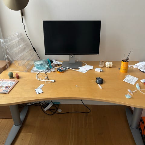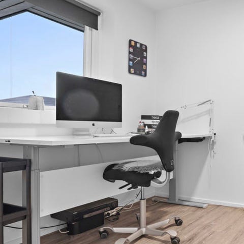 Under stellet er en praktisk kabelbakke, der samler og holder orden på ledninger.