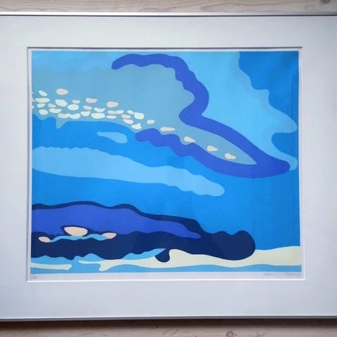 Tom Krøjer litografi med abstrakt motiv i flere farver. Nyindrammet samt nyt passepartout.