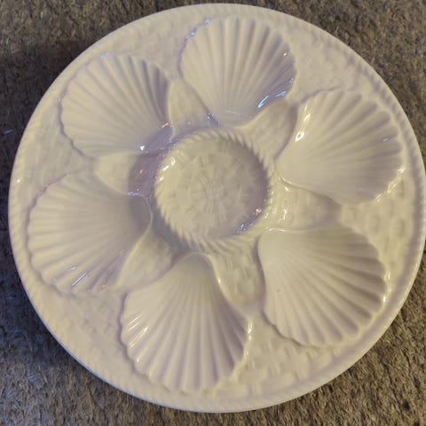 Fire super smukke vintage østerstallerkner af fajance. En tallerken mærket Longchamp France. Diam. 24 cm.