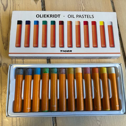 Malebog + Farvekridt med 12 stk i forskellige farver. Farvekridt er velegnede til tegning og kreativ leg for børn.