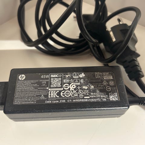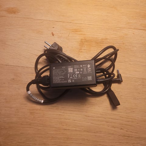 HP strømforsyning/AC Adapter til laptop med en output på 19V og 4,74A.