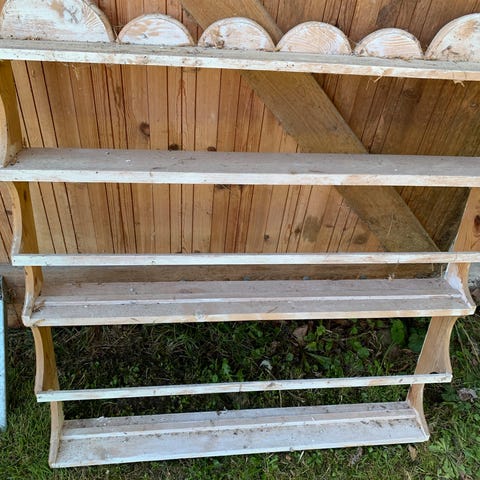 Tallerkenrækker af bemalet træ. De to blå af ældre dato. 125 x 120 cm. for største til sammenligning.