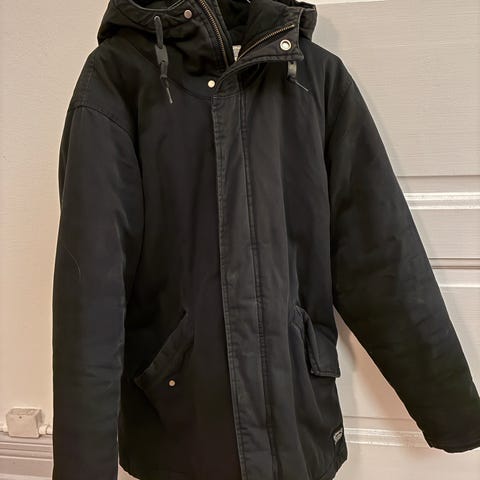 Levi's Vinterjakke i størrelse L til mænd. Jakken er grøn og lavet af dun, hvilket giver isolering og varme. Designet til udendørs brug i koldere vejrforhold.