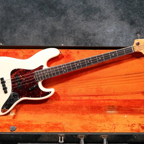 Fender Jazzbass matchen headstock 1965 - står i god spilbar stand - lyder fantastisk!!’ basen er en player - og prisen der efter : Custom coler Sort - lak / finish er original på headstock’en og halsen kroppen er der imod refin. pots skiftet-