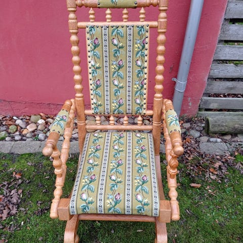 Stolen har et par år på bagen; men i rigtig fin stand. Ingen pletter!