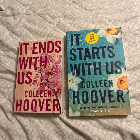 Bogen “Det begynder med os” på engelsk. 2’eren til “Det ender med os”. Har lidt brugsmærker i hjørner, men fejler ellers ikke noget