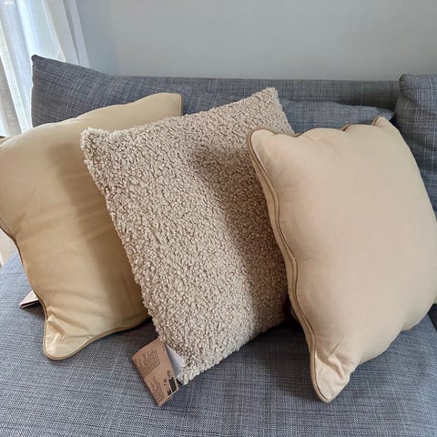 Sæt med 2 grøn i fløjl puffer fra Søstrene Grene, som nye. 40 x 37 cm og 30 x 32 cm.