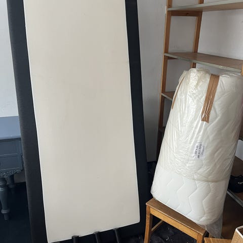 Boxmadras 90 cm × 200 cm med meder, 2 år gammel, kun brugt som gæsteseng få gange