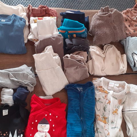 8 bodyer, 2 lange bukser, 3 savlesmække og 1 sæt str 62 (de to Joha er dog str 60) alt sammen i pæn stand. Mærker: NameIt, H&M, Joha, BeKids. Savlesmækkene er ikke brugt.