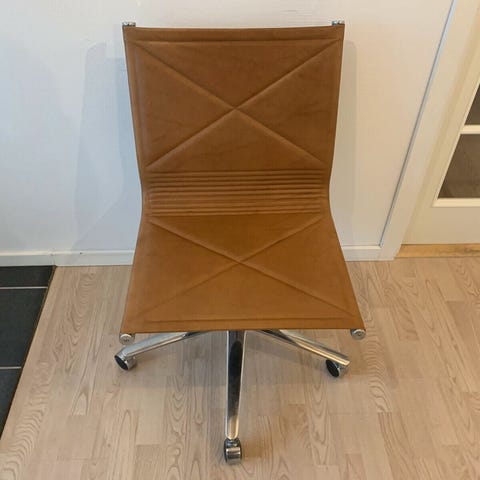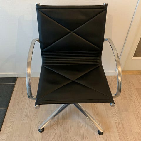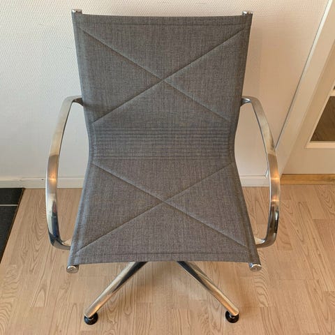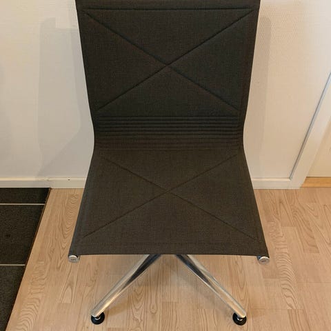 Hvid mesh (meshen er helt ren - svær at gengive, da den fanger baggrunden). Alle hjul kører frit og hæve-sænkefunktionen er intakt. Ny pris ca. 13.000 kr. (dykeanddean.dk).