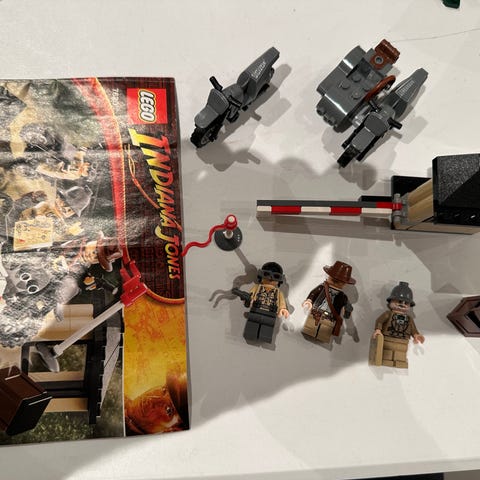 LEGO Indiana Jones legetøj bestående af byggeklodser til samling og leg. Produktet indeholder flere dele i forskellige farver og former, som kan sammensættes til scener og figurer fra Indiana Jones-serien.