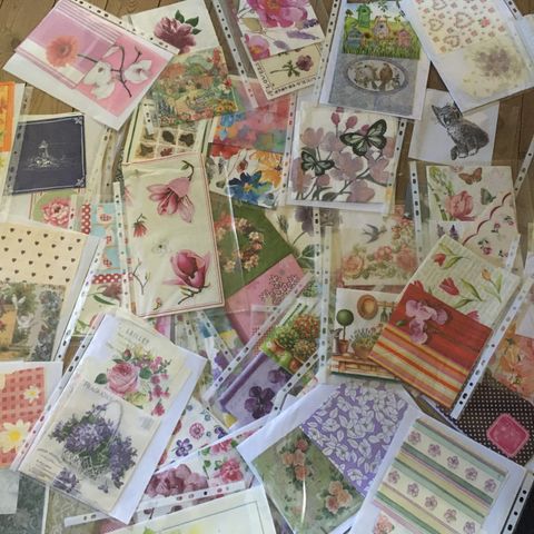 Jeg vil skille mig af med min gamle serviet samling som er 55-60 år. Mange flotte blandt. fra min egen konfirmation,børnemotiver,jul, påske og meget andet. . Ca. 500?