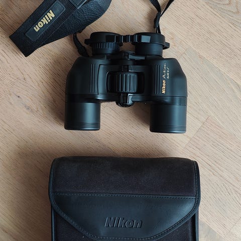 Fin kikkert fra Nikon. Begge beskyttelse stykker er der. Den ene var ikke på da jeg tog billedet.