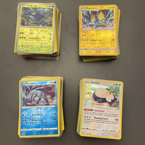 Pokémon samlekort med forskellige typer og sjældenheder