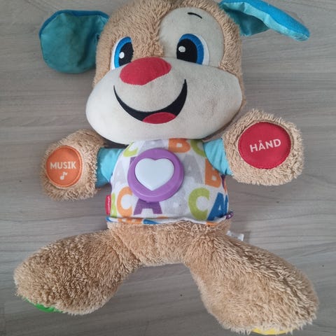 Denne søde hvalp fra Fisher-Price gør det sjovt at lære. Hvalpen har en indlæringsindstilling, så barnet kan lære ord, tal alfabetet, forskellige kropsdele og farver ved hjælp af sjove sætninger. Hvalpens hjerte blinker i takt til musikken. På foden kan der indstilles til forskellige niveauer fra 0 - 3 med mange forskellige sange, aktiviteter og sjov.