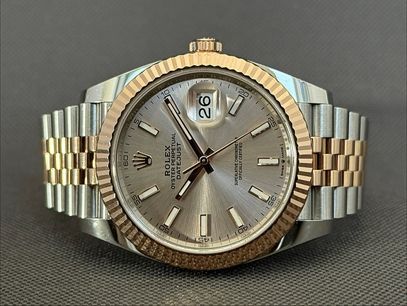 Super smukt Rolex Oyster Perpetual i 41mm med den flotte silver skive. Låsen er med easylink som kan justeret med 5mm for ekstra komfort. Inde i uret sidder Rolex nye Calibre 3230 som yder 70 timers gangreserve og vandtæthed til 100 meter.