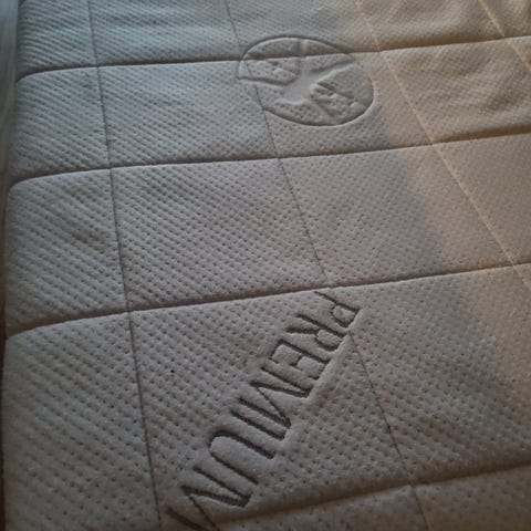 Madrass + nesten ny overmadrass. Kan få med to hotelpuder.