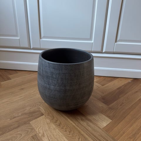 Smuk sort krukke med glans. Fremstår som fra ny, designet er rustikt.