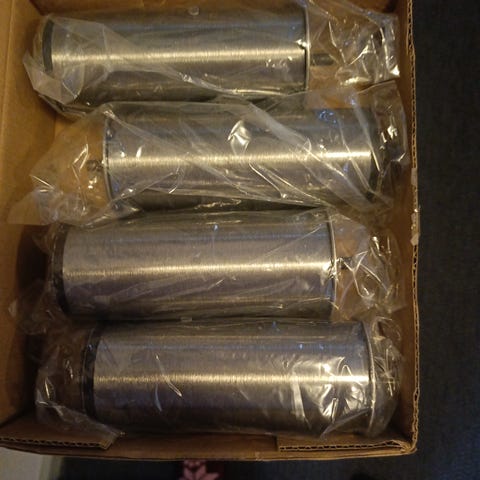 4 stk ubrugte sengeben i rustfrit stål, der medfølger 4 ubrugte monteringsplader. Kan sendes. Fast pris