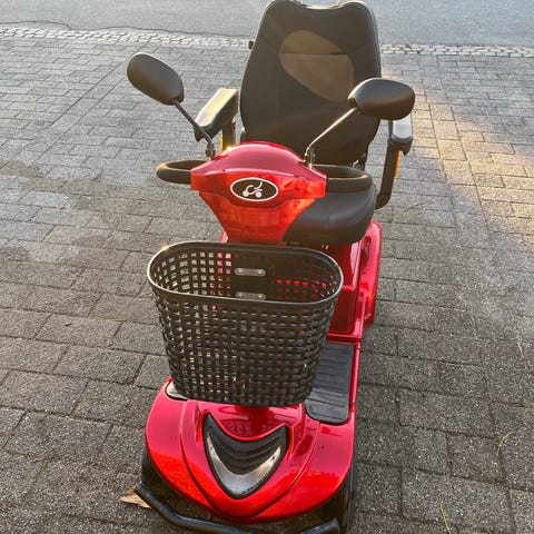 Heartway Mokka El-scooter med 4 hjul i grå farve. Udstyret med kurv foran og komfortabelt sæde med nakkestøtte. Designet til mobilitet og transport.