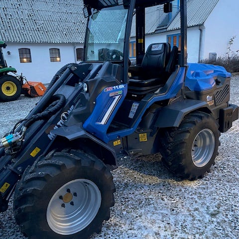 Multione 5.2K minilæsser med 4WD og hydrostatisk transmission. Maskinen er blå og velegnet til forskellige opgaver inden for landbrug, byggeri og anlæg.