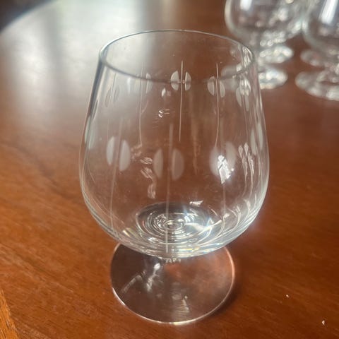 6 rødvin + 6 hvidvin + 6 portvin + 6 cognac. I alt 24 glas sælges samlet