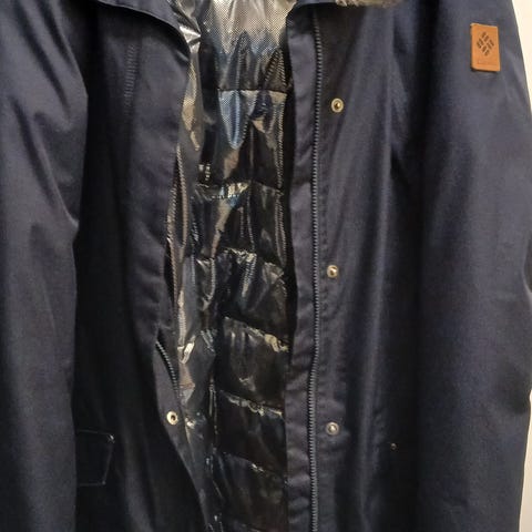 Columbia oversize jakke i størrelse M til kvinder. Jakken er sort og lavet med dun som materiale. Den er designet til udendørs brug.
