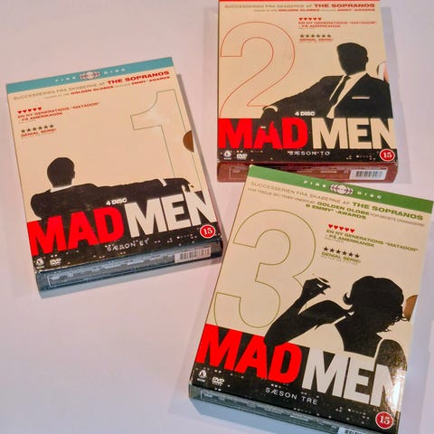 Mad Men DVD-sæt indeholdende sæson 1 til 4, fordelt på 16 DVD'er.