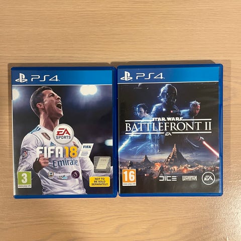 Playstation 4 spil med titlerne Star Wars, WWE 2K18, FIFA 21, The Incredibles, Ratchet & Clank og LEGO Marvel Super Heroes. Spil til underholdning på Playstation 4 konsol.