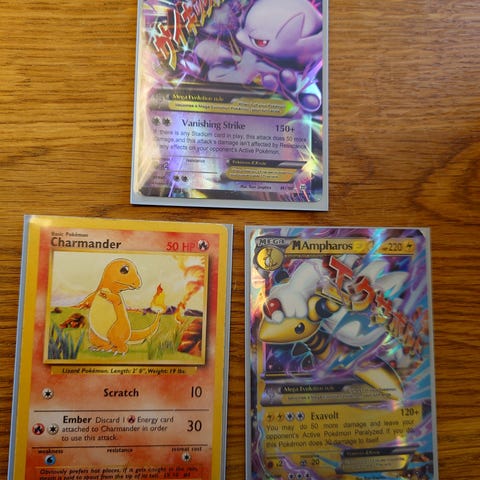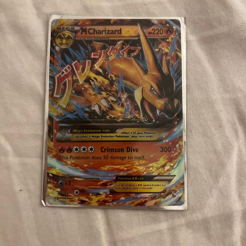 Pokémon M Charizard EX samlekort, Kortet er beskyttet i en plastikholder.