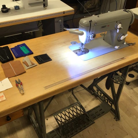 Pfaffen er lavet ca. år 2000 og er i tip top form. Der er lige udskiftet til et mere stabilt koblingssystem og resten er som nyt - ja lige bortset for trådklippesystemet. Den er rimelig lydløs når den kører. Larmer lidt når den skal hefte - men det gør industrisymaskiner! - typisk fordi de hefter med stor hastighed.