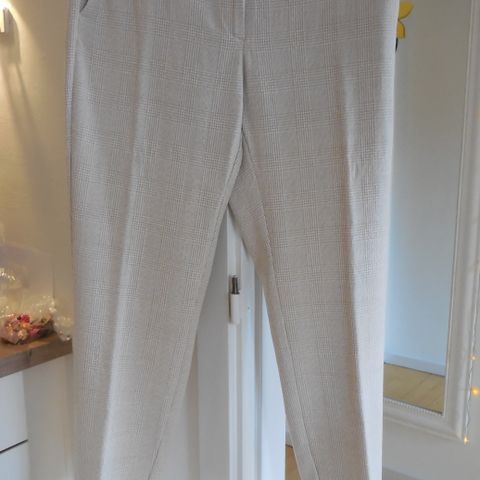 Hvid/ beige ternet bukser str L, mærket H&M. Viskose . Sidder rigtig flot, der er stræk i stoffet. Se evt mine andre annoncer