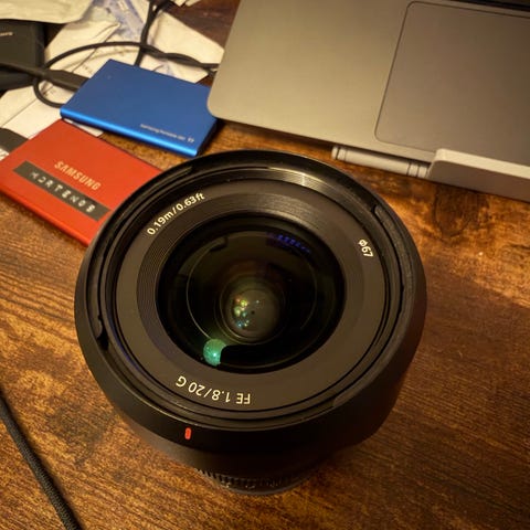 Sony FE 20mm f/1.8 G objektiv med stor blændeåbning på f/1.8, designet til Sony full-frame kameraer. Objektivet har en brændvidde på 20mm og er velegnet til landskabs-, arkitektur- og astrofotografering. Det er fremstillet med avancerede optiske elementer for at minimere forvrængning og sikre høj billedkvalitet.
