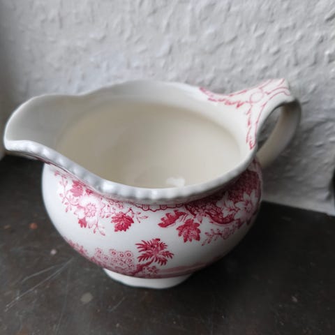Fint lille engelsk fajance sæt med flødekande og sukkerskål. De er fremstillet hos Wood & Sons fra serien Enoch Woods, English Scenery.