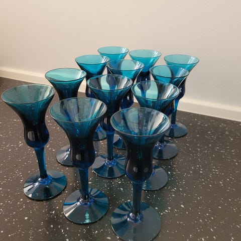 Holmegaard snapseglas og tre snapseglas.