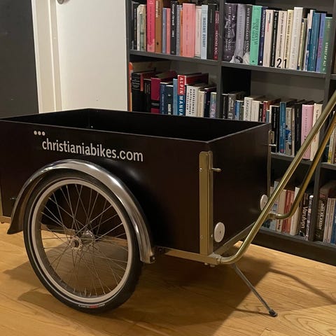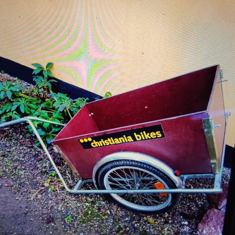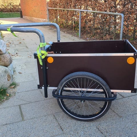 Retro Christiania cykelanhænger med forhøjning rummer 295liter. Kassen måler 90x 62x53 cm. Trækhøjden er 80cm. Totalbredden er 90 cm total længden er 175 cm.