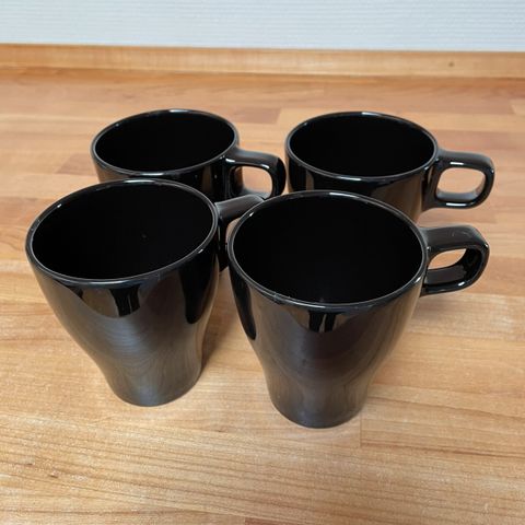 IKEA krus med motiv af nordlys og naturscener. Krusene har hvide indvendige sider og håndtag med gyldent udseende. Egnet til servering af varme drikke.