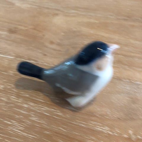 Royal Copenhagen keramikfigur af en fugl med unikke detaljer i blå, brune og beige nuancer. Figuren er håndmalet og viser en fugl siddende på en base, der efterligner vand. Keramikfiguren er dekoreret med Royal Copenhagens logo på undersiden.