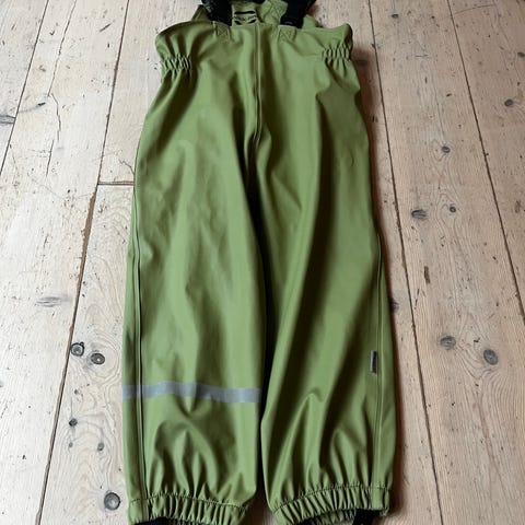 Rosa regnbukser i størrelse 140. Ingen fodstropper og mærker bagpå.