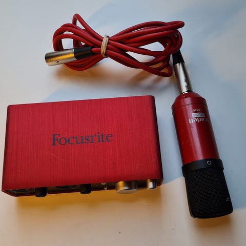 Sælger komplet focusrite Scarlett Solo studie indspilnings pakke, aldrig brugt kun pakket ud.